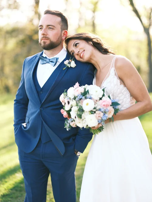 navy blue wedding suit with pink tie